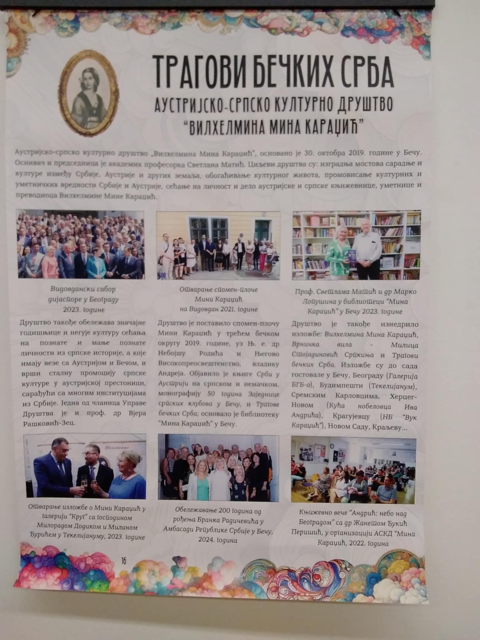 Под покровитељством Силвие Јанковић, председнице Пете бечке општине, 08. маја 2025. године, свечано је отворена изложба „Трагови бечких Срба“, аутора Светлане Матић и Марка Лопушине. Изложба је настала по истоименој књизи. Дизајнирао ју је Душан Борисављевић, а кроз пројекат, њену израду финансирало је Министарство културе Републике Србије