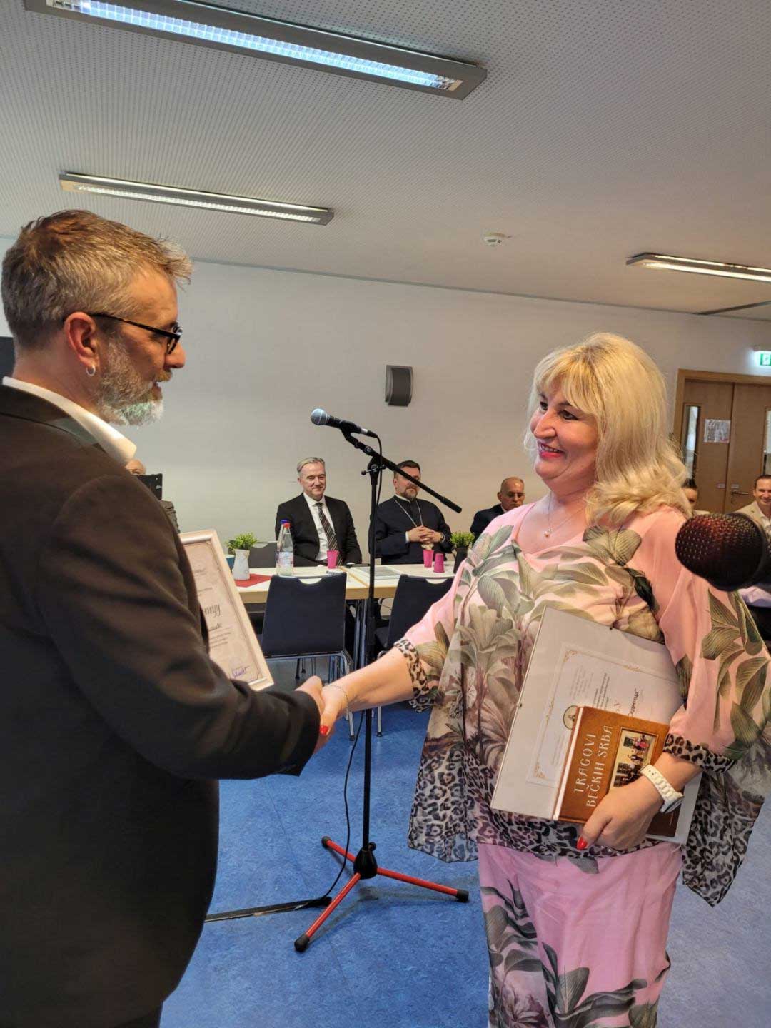 Проф. Светлана Матић уручила је Повељу Удружењу писаца „Седмица“, у име АСКД „Вилхелмина Мина Караџић“, за дугогодишње резултате на пољу културе и очувања српског језика у расејању и књигу „Трагови бечких Срба“, аутора Светлане Матић и Марка Лопушине, коју је примио Александар Јовановић, председник. Др Вјери Рашковић Зец и проф. Светлани Матић, Јовановић је уручио Захвалнице за изузетан допринос очувању српског језика, ћирилице и књижевности у расејању и зближавању матице и дијаспоре.