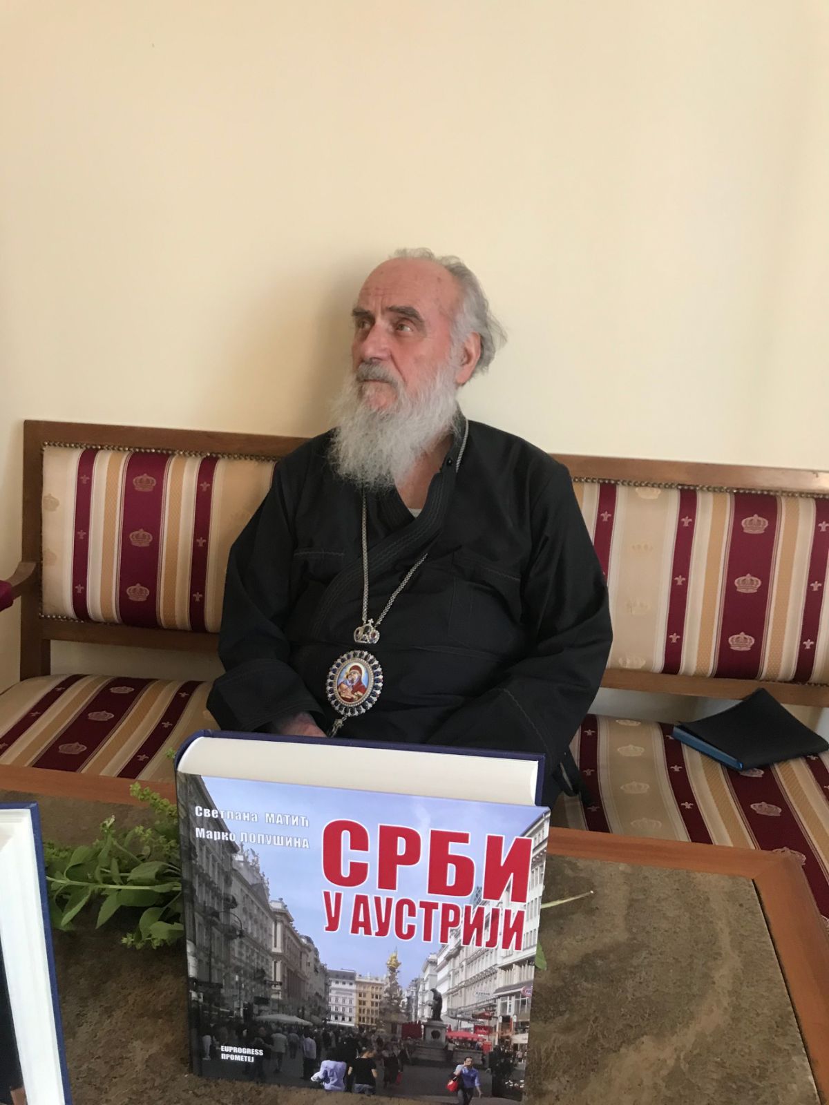 Njegova Svetost Patrijarh srpski g. Irinej primio je juče u Patrijaršiji g.Marka Lopušinu i Miluna Nikolića iz Beča. Tom prilikom mu je uručen primerak knjige „Srbi u Austriji“. Njegova Svetost Patrijarh srpski g.Irinej zahvalio se autorima Svetlani Matić i Marku Lopušini na velikom uloženom trudu u izradi ove značajne monografije i pozdravio ideju da se knjiga prevede na nemački jezik.